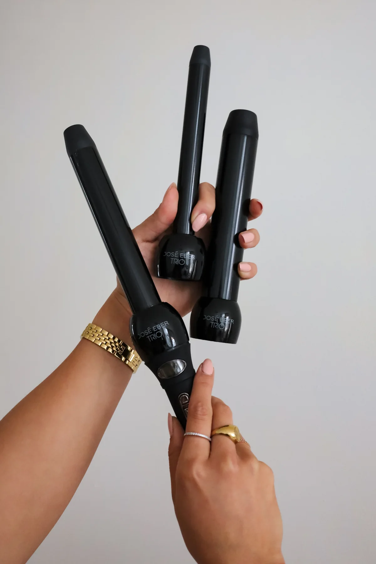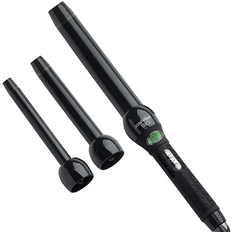 Een krultang set met drie opzetstukken met verschillende diameters om verschillende looks te creëren.