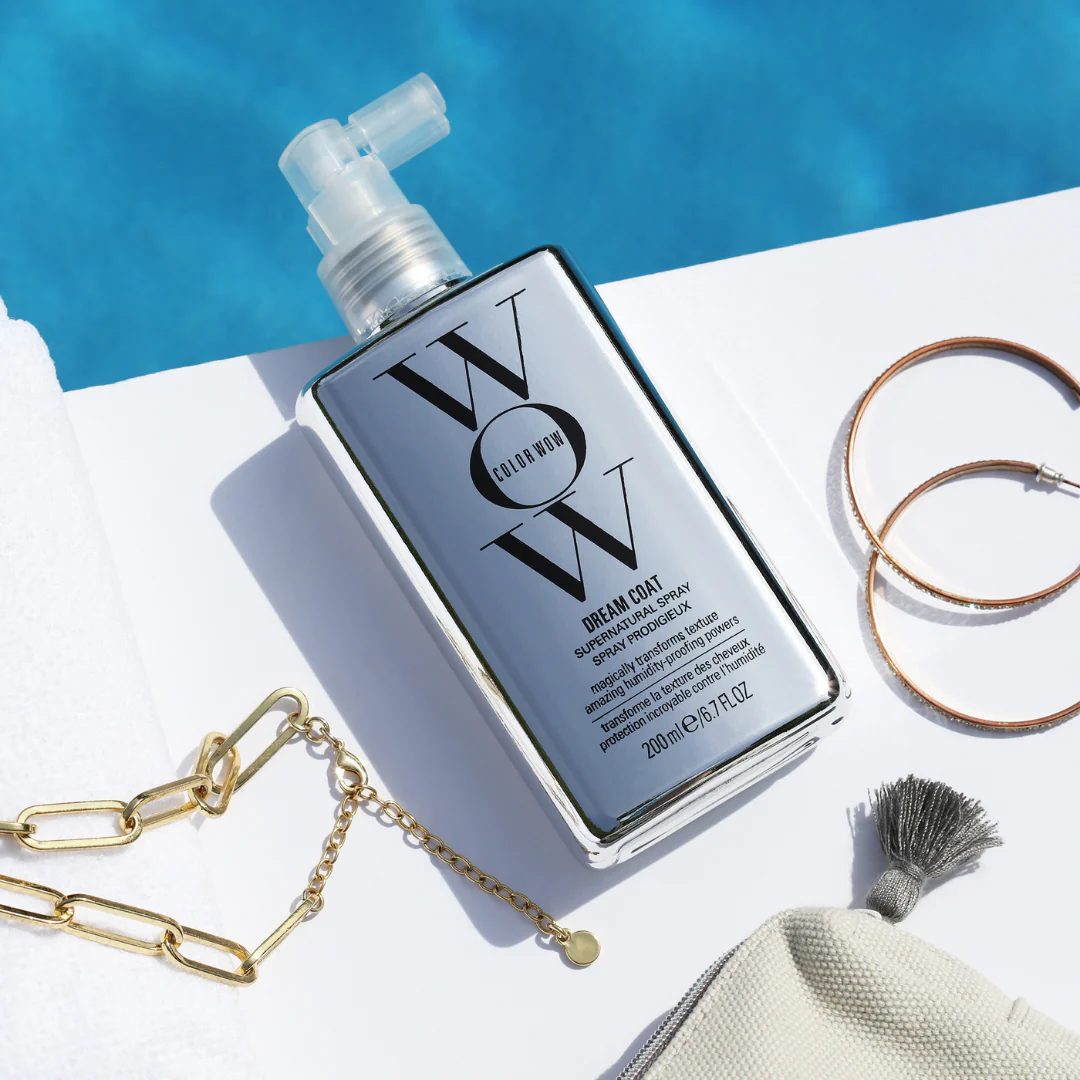 De Color Wow Dream Coat heeft een ultra lichte formule die het haar niet vettig of zwaar maakt in tegenstelling tot traditionele olieën en serums. De Dream Coat wordt geactiveerd door hitte, als u het haar föhnt of stijlt zullen de micro-druppels een beschermlaag vormen die het haar glad maakt én dient als regenjas voor het haar. Gekleurd haar neemt namelijk gemakkelijk water op waardoor het pluizig wordt, haar wat behandeld is met Dream Coat daarentegen stoot water af en zal het water niet opnemen. Het water blijft als het ware op het haar liggen en trekt er niet in, dit zorgt ervoor dat u niet langer bang hoeft te zijn voor regenachtige dagen of warme feestjes.